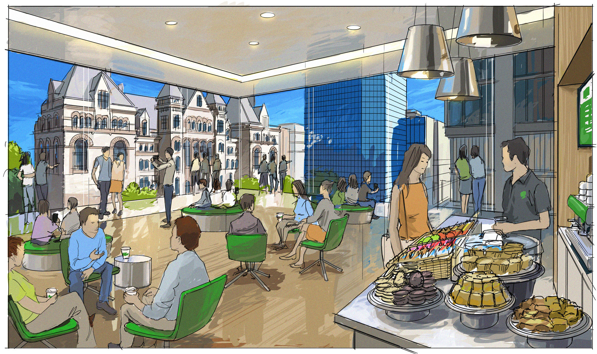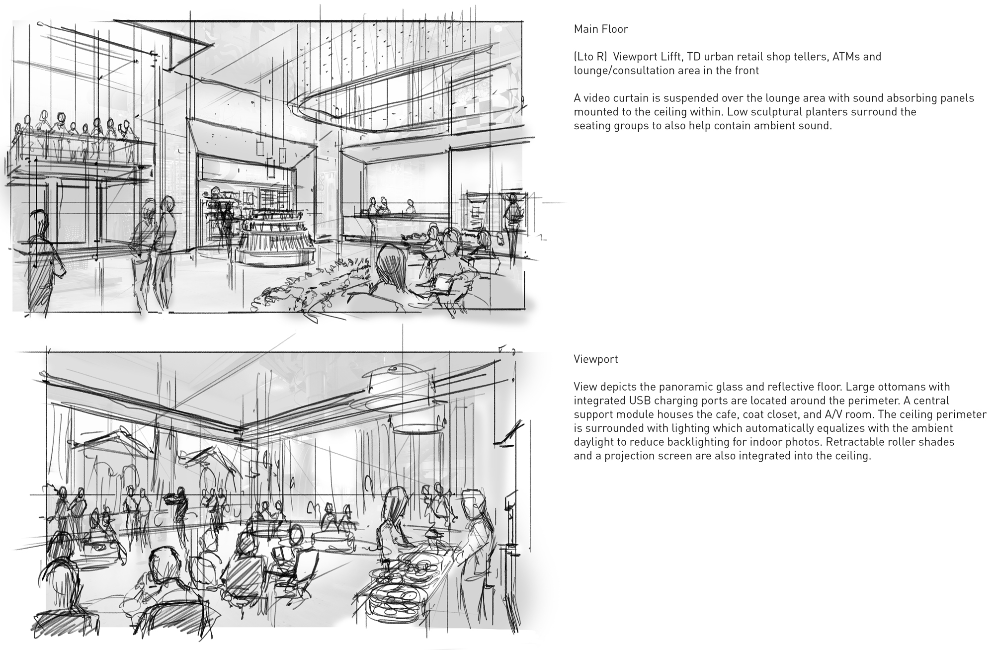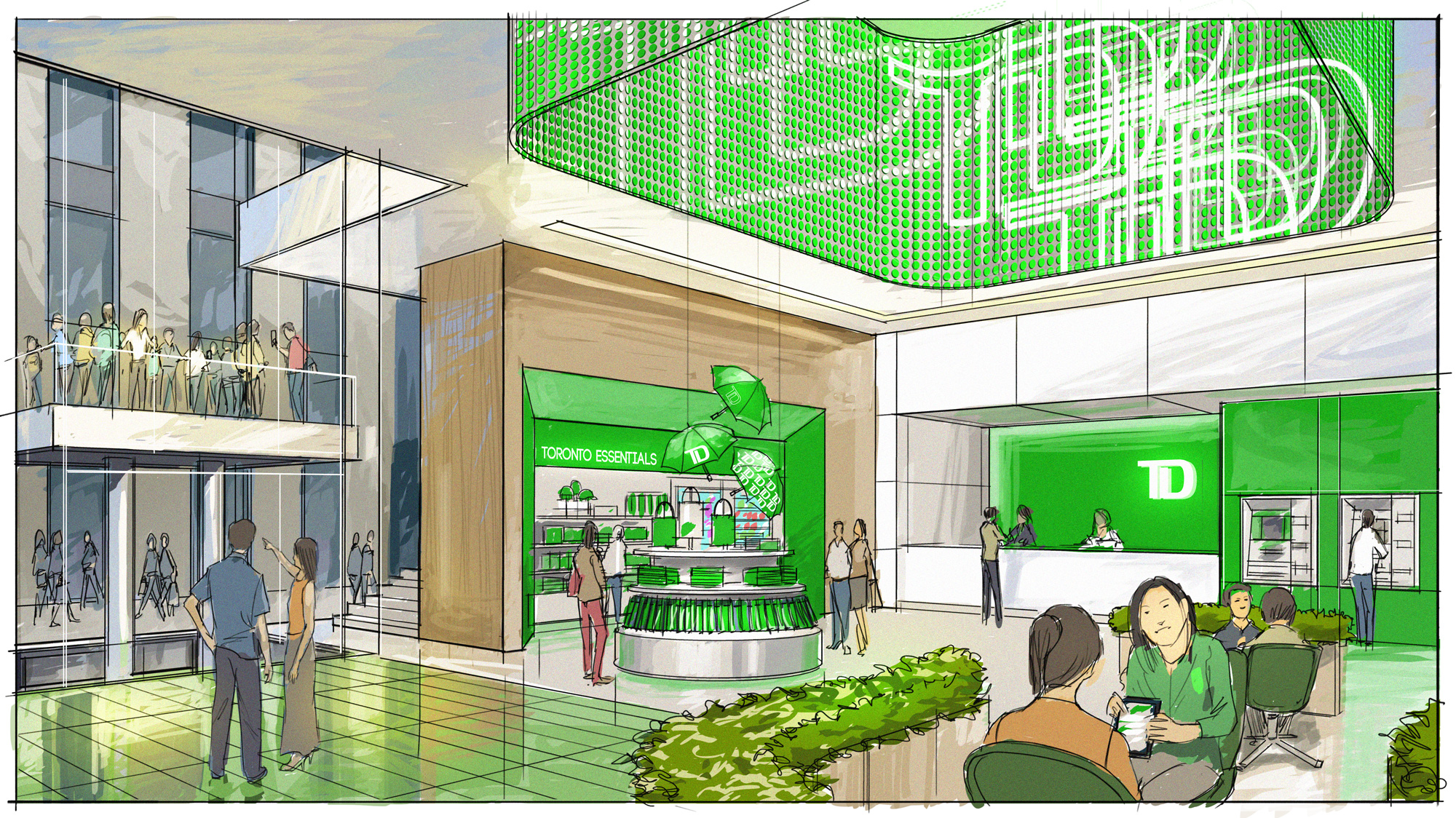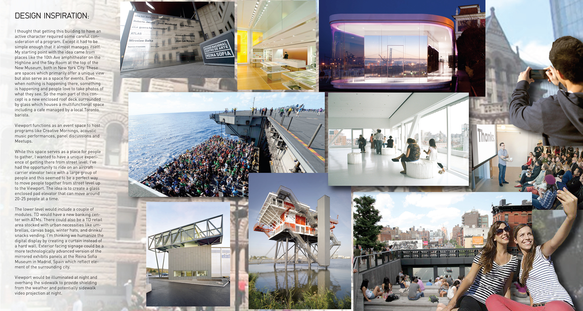 Would it be possible for the TD Toronto Flagship to give a gift to the local community and visiting tourists, the gift of a brand new view. Considering the site, I imagined this would be the most interesting and unique way to make the location highly trafficked and a destination within the city of Toronto.